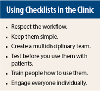 Dr. Berry noted that a checklist by itself is just a piece of paper, and proper training is essential to making it a valuable tool in the clinic. “Actual practice using the checklist away from the patient setting is the best way for people to learn. Repetitive workshops during which the checklist is used also creates a good communication base for the care team,” said Dr. Berry, adding, “Collecting feedback and learning about what works well is essential for long-term use.”