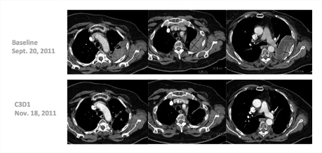 “Many of these responses have been long-lasting, with patients remaining on treatment for 20-plus weeks,” he said. Several patients have received the drug for 1 year, including a complete responder who had received 14 prior lines of treatment (Fig. 1). One patient with triple-negative breast cancer responded dramatically after 10 prior lines of treatment (Fig. 2).